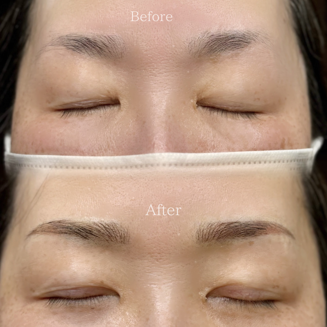 A:一般的に1〜3年程度持続しますが、肌質・代謝・日常のスキンケア内容によって個人差があります。色素は徐々に薄れていく性質のため、定期的なリタッチ施術を行うことでより美しい状態を長く維持することが可能です。