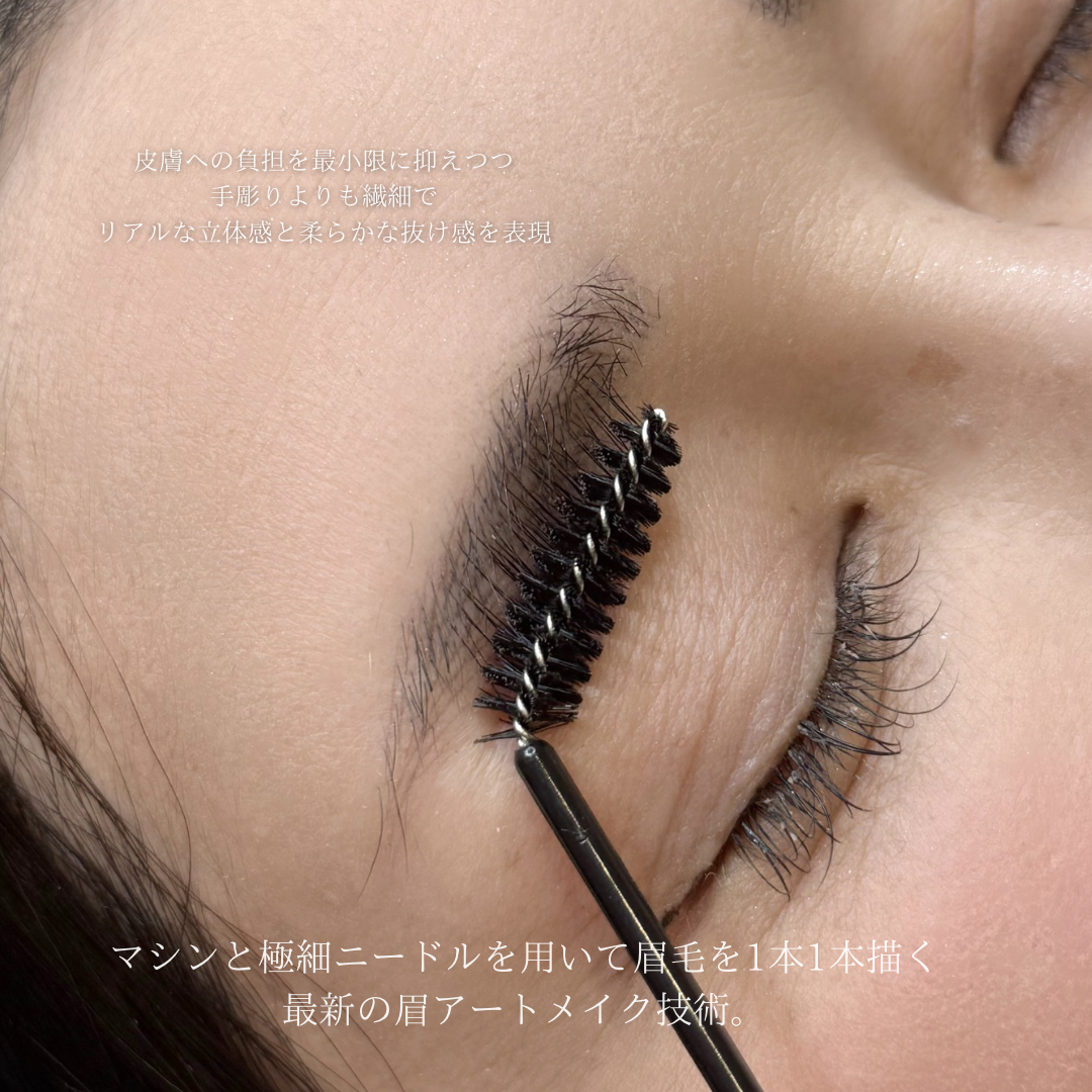 アートメイクは、専門のアーティストが、2D/3D/4D/ストローク/パウダー/韓国風といった異なる施術方法を技術の違いにより皮膚に針や刃物で傷をつけて異なる色素を入れることで、眉毛やアイライン、リップ、ヘアラインなどを美しく整える施術です。