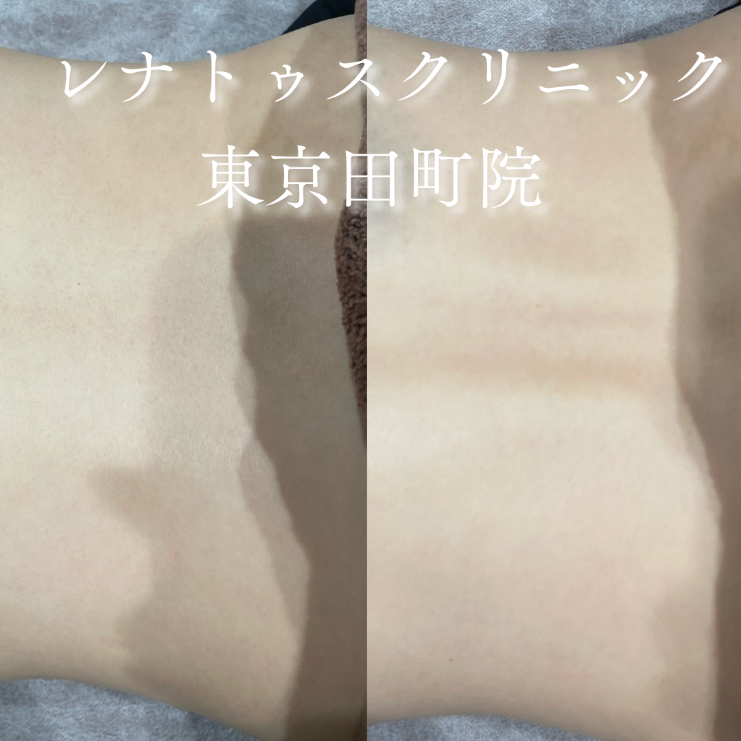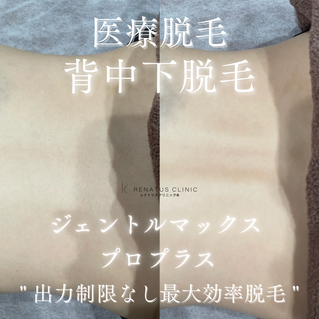 東京で背中医療脱毛が安い都度払いコース終了後ありならレナトゥスクリニックがおすすめです。効果高いツルツルな仕上がりになるように、火傷などの副作用に注意しつつジェントルマックスプロプラスで高出力で重ね打ちをしました。