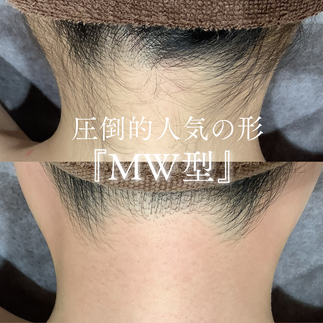 うなじ脱毛で最も人気のデザインはMW型、次いでアーチ型でこの2つで90%以上のデザインです。