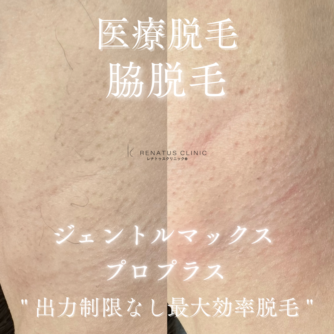 ムダ毛をなくすことで脇のムレや匂いも改善されます。個人差はありますが回数は大体5〜8回ほどで満足するでしょう。ジェントルマックスプロプラスで高出力による脱毛のため、より早く脱毛効果を感じられます。