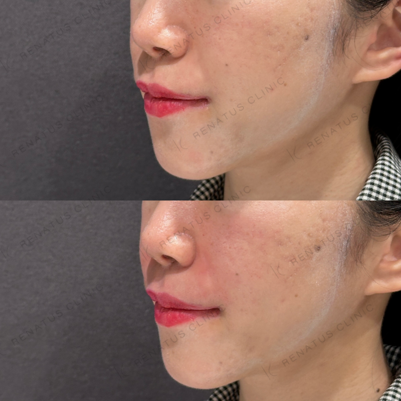 ほうれい線が目立たなくなるように処置しました。