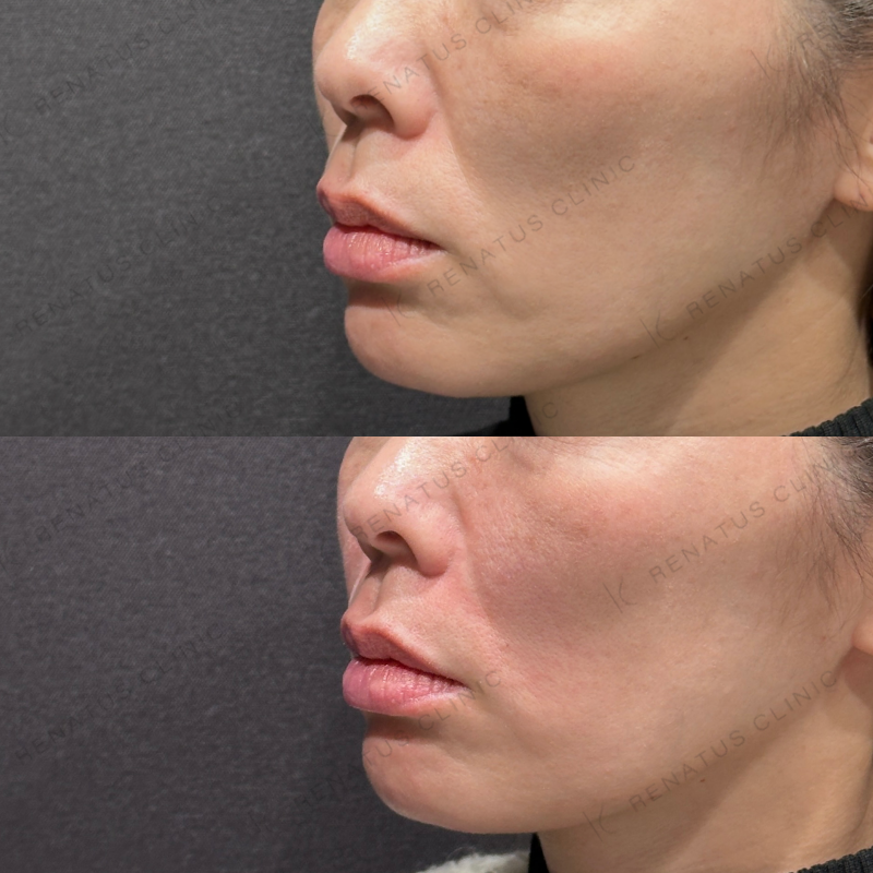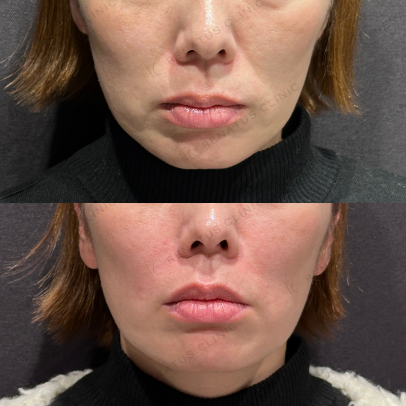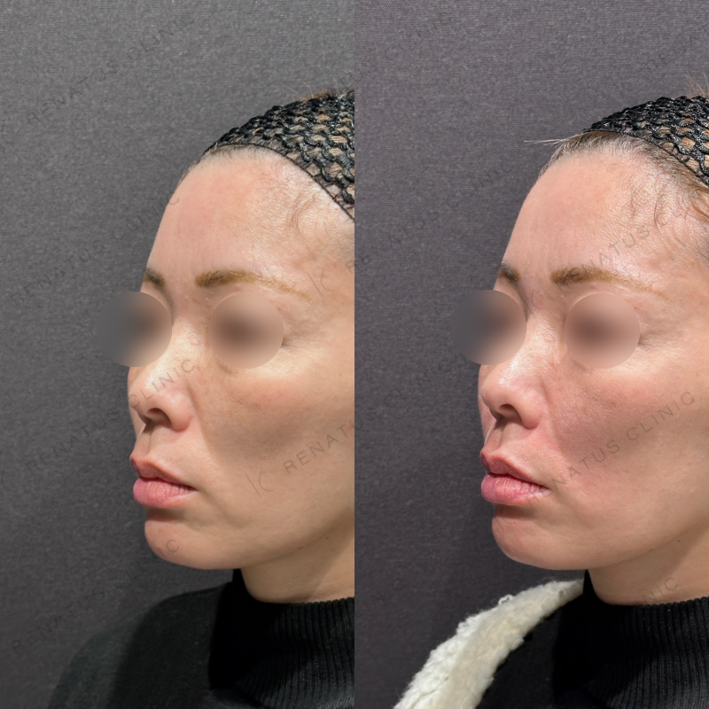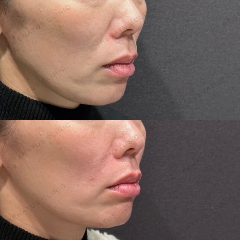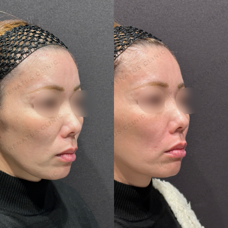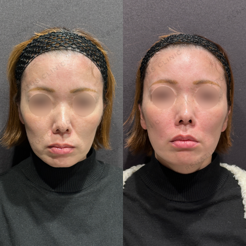 ほうれい線が深くなりやすい40代の患者様の症例を多数蓄積しており、年齢・肌質・骨格に合わせた細やかなデザイン調整が可能です。ビフォーアフター写真も豊富にご覧いただけますので、仕上がりのイメージを事前に共有できます。 - ③ダウンタイムを最小化する丁寧な注入技術