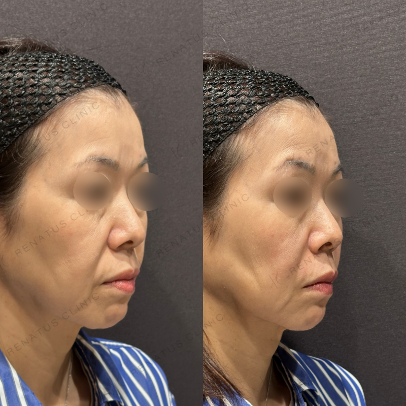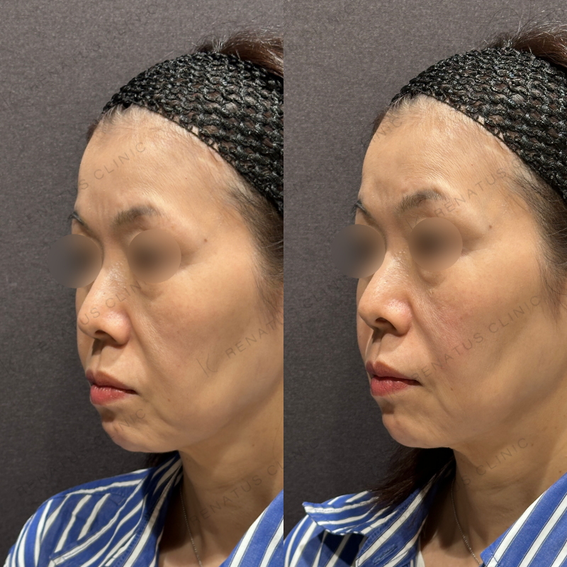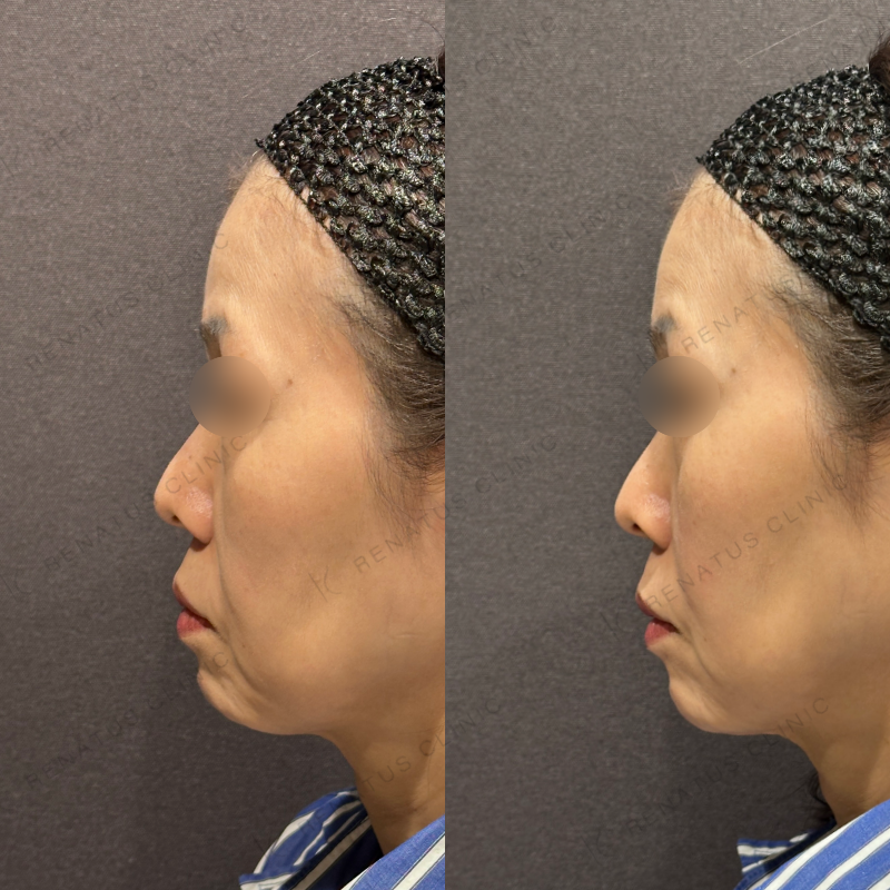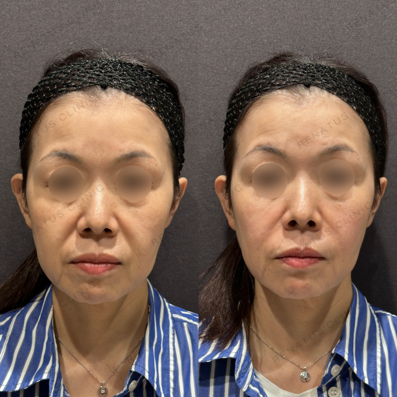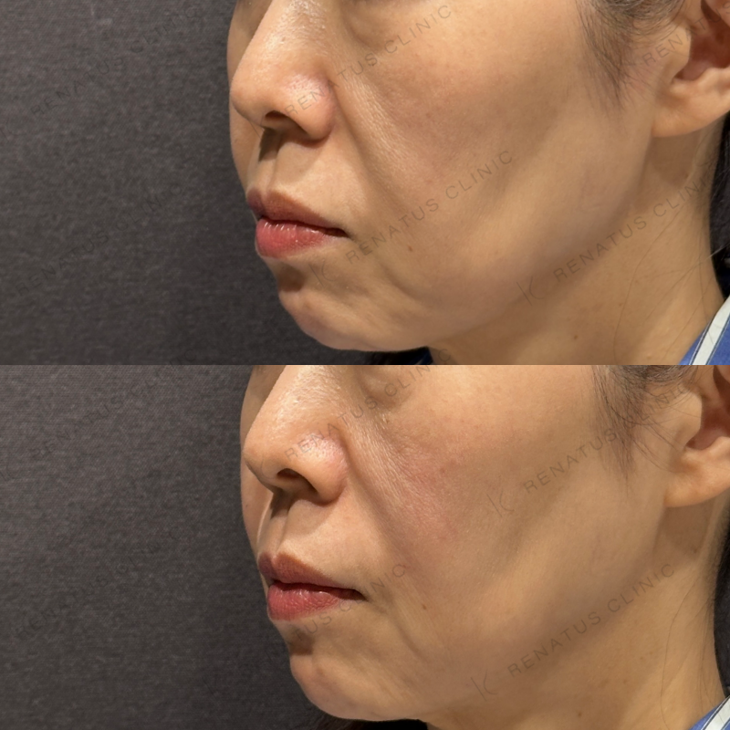 ほうれい線とマリオネットラインがどちらも改善するように処置しました。