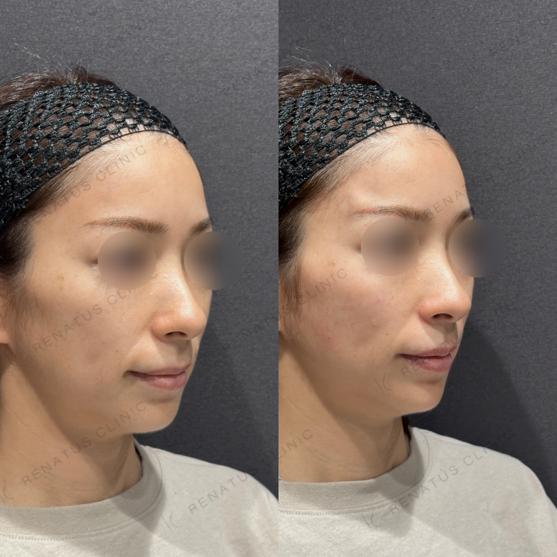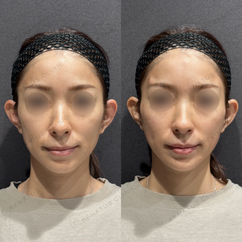 顔全体が自然にリフトアップするように処置しました。