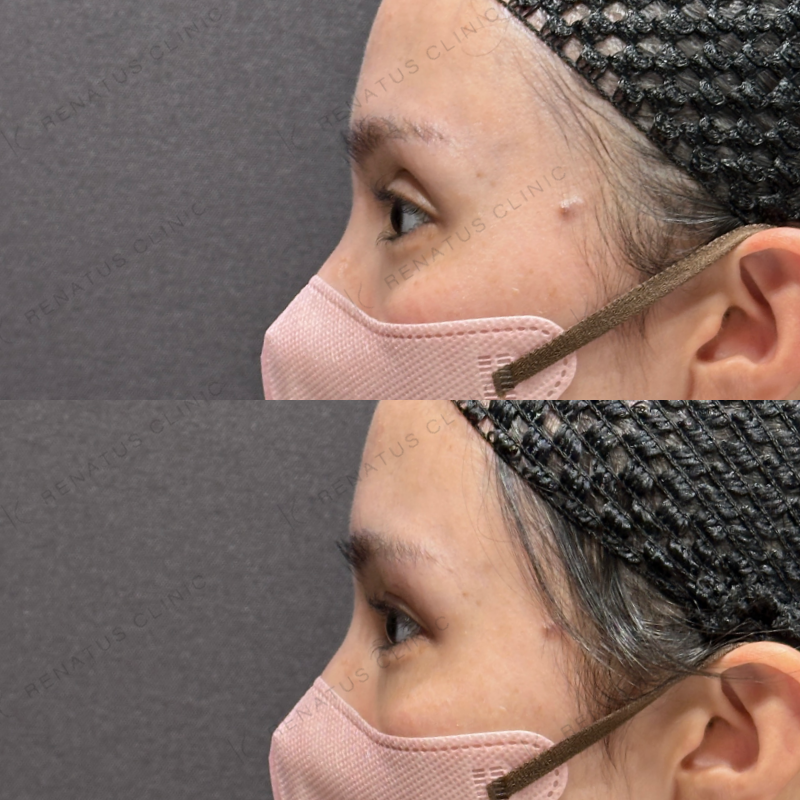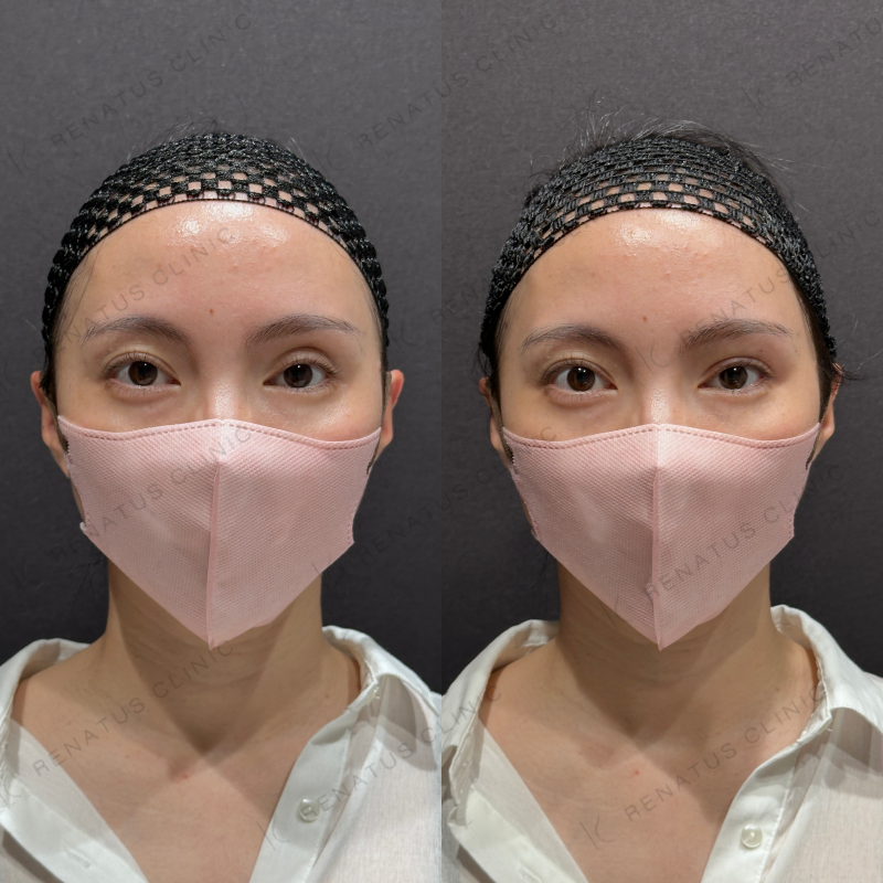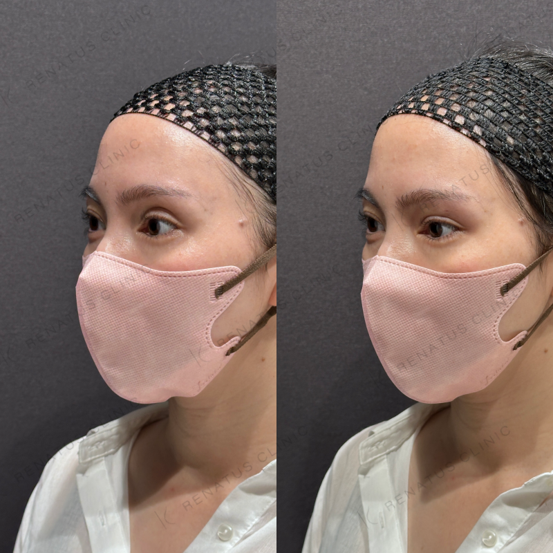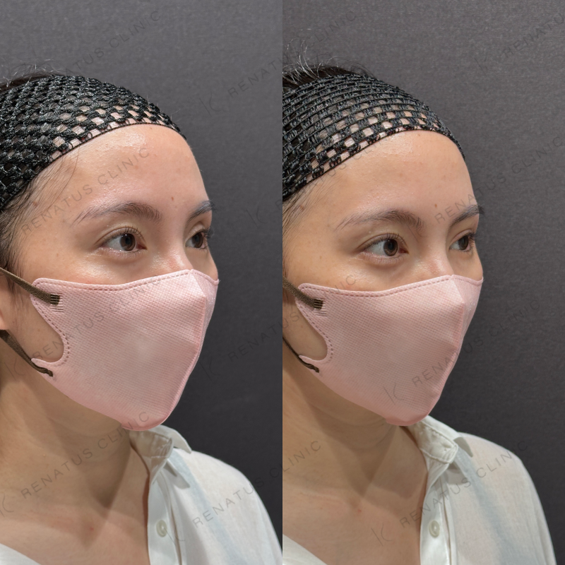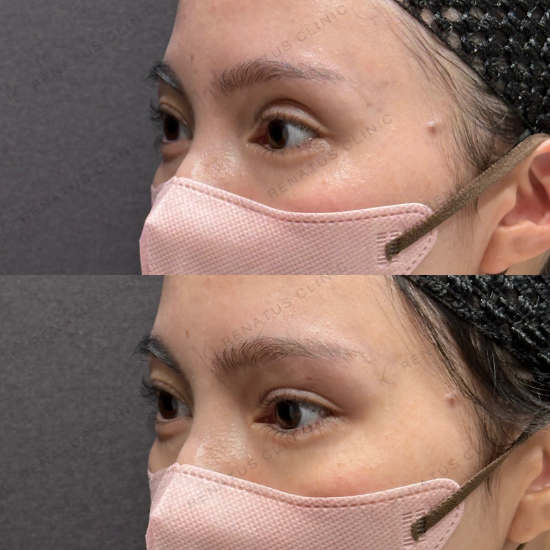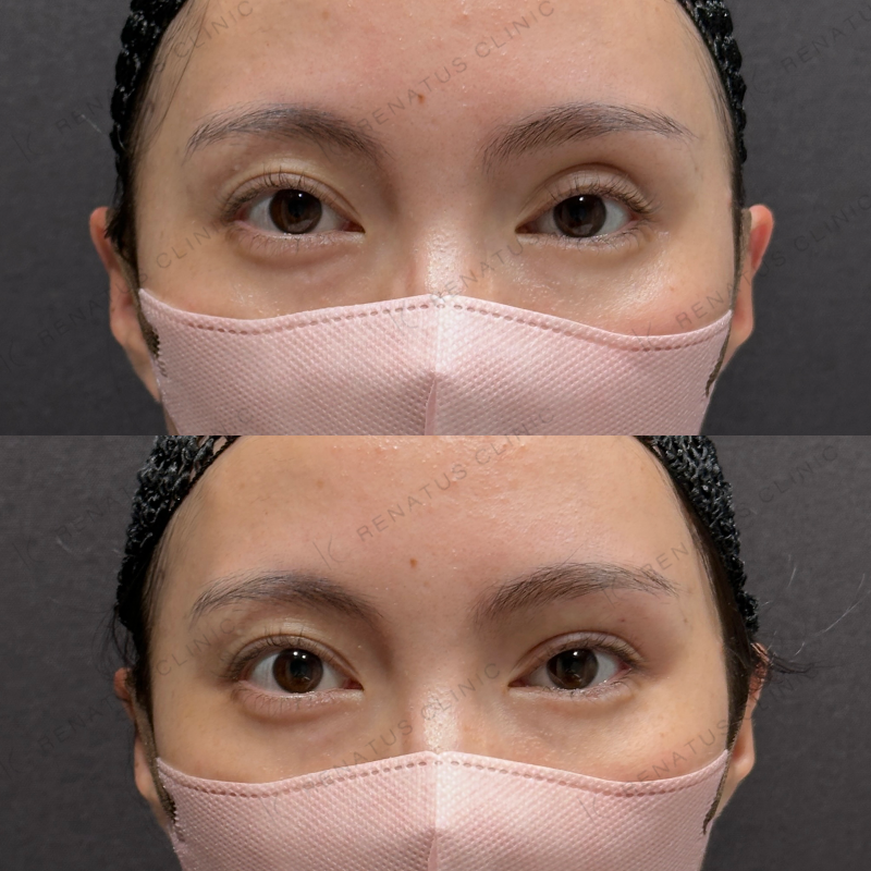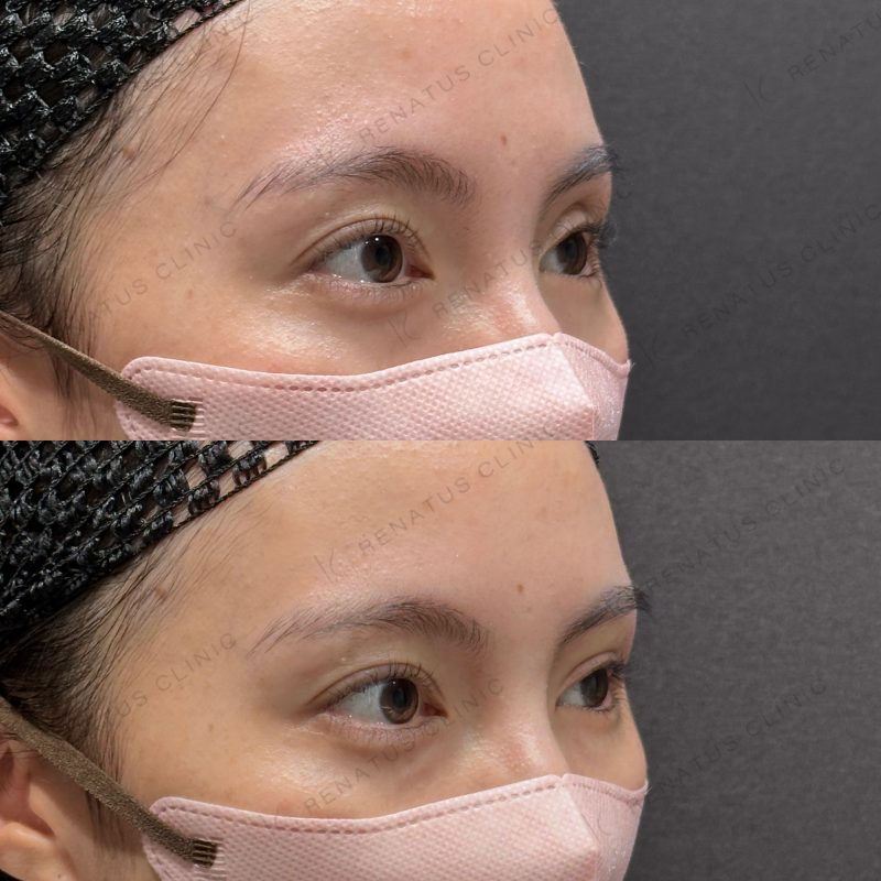 目の上の凹みを埋めるように処置しました。