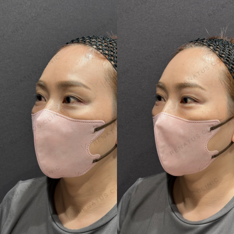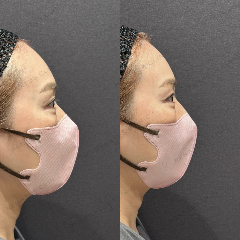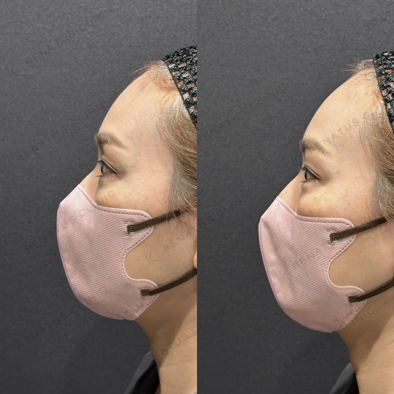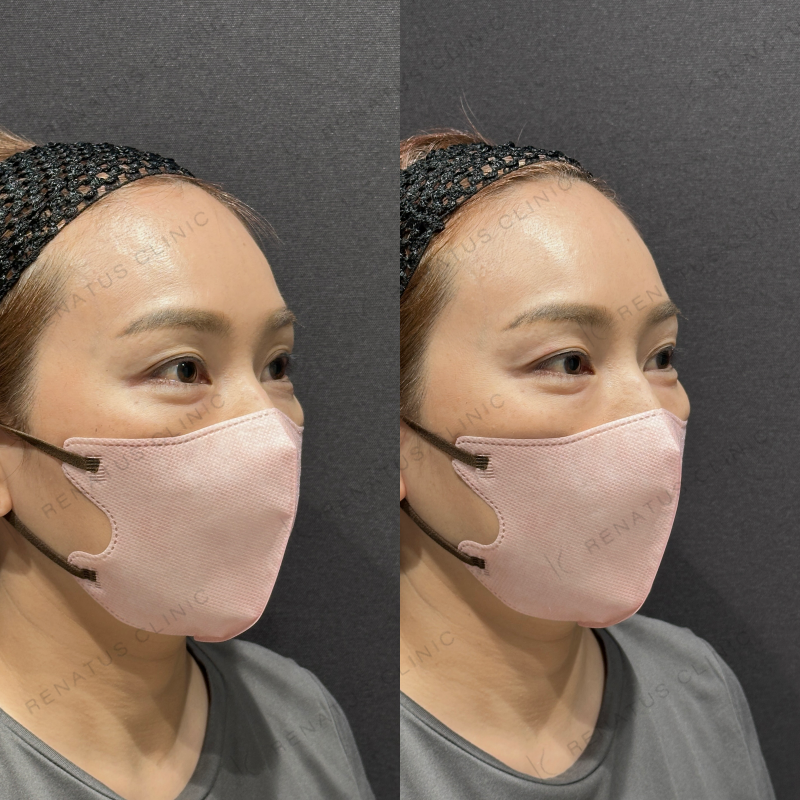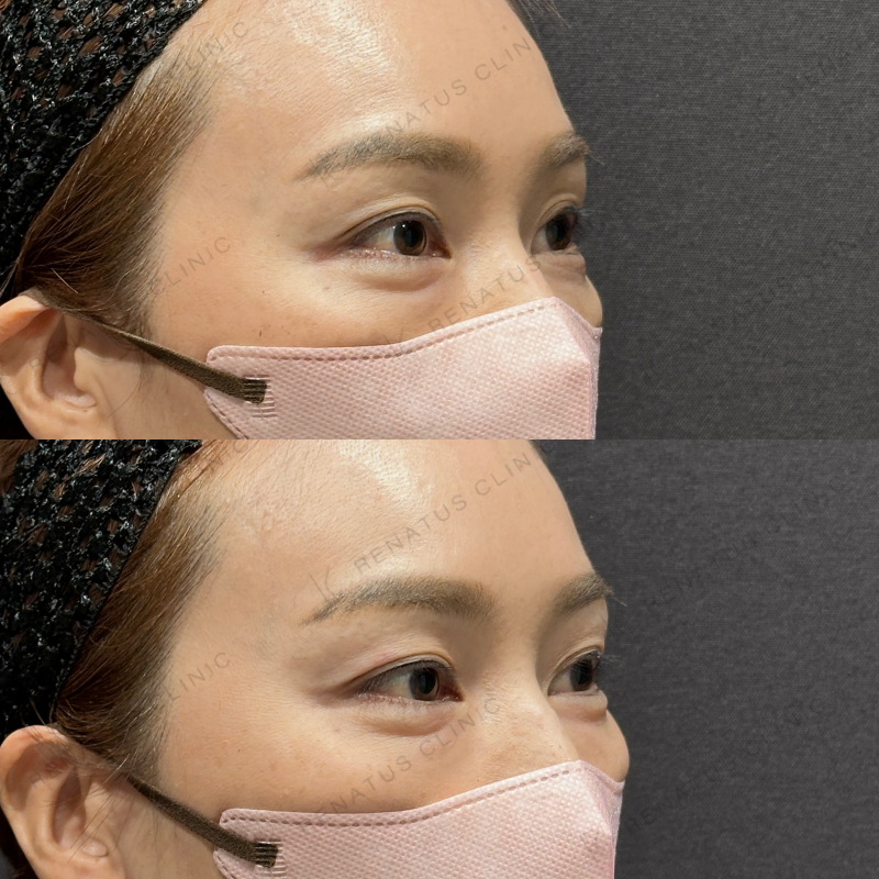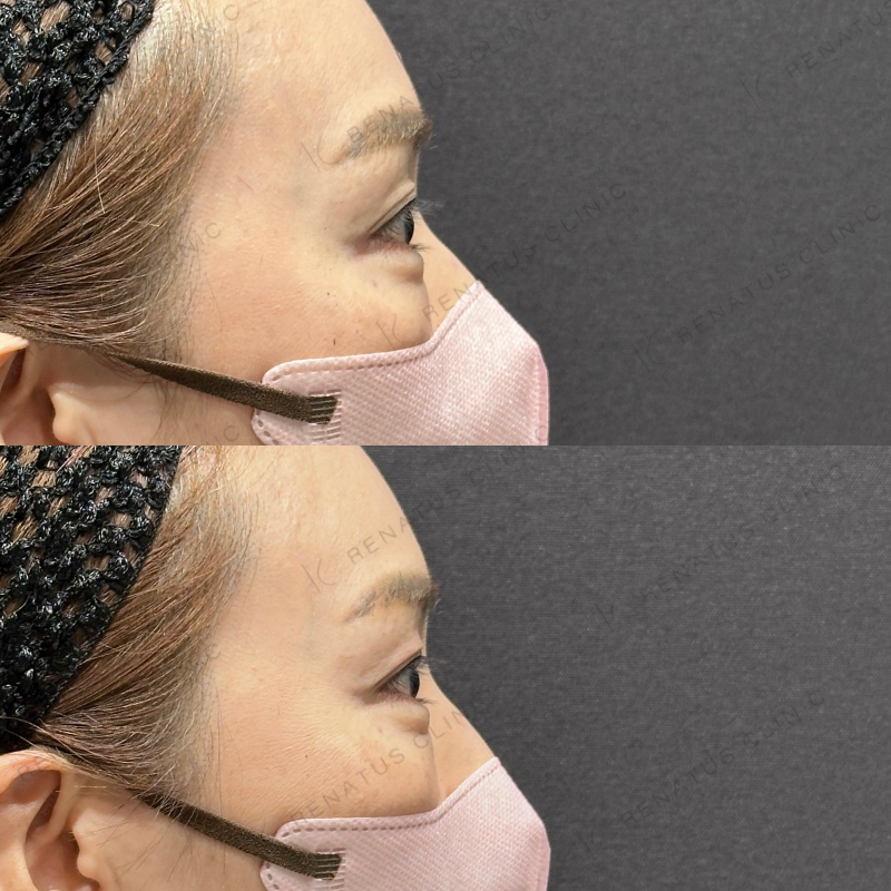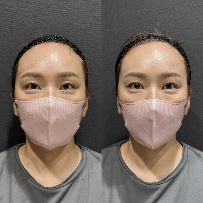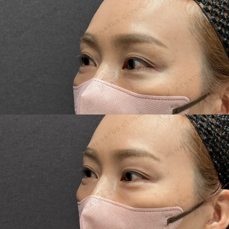 目の上の窪みを改善し、涙袋にボリュームが出るように処置しました。