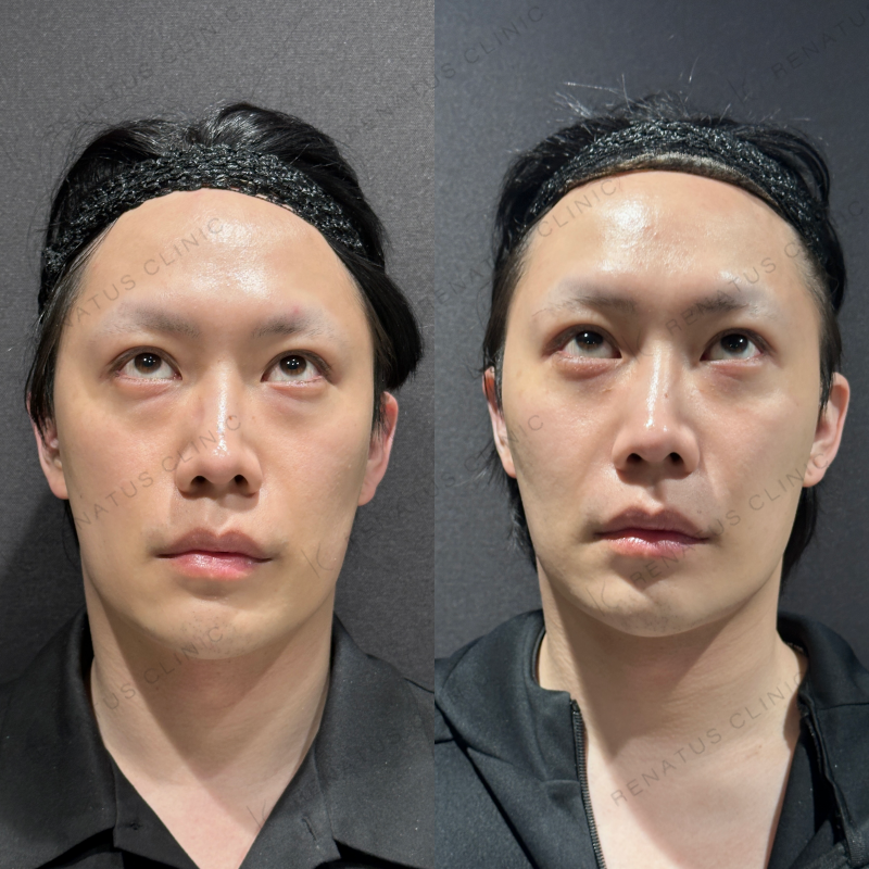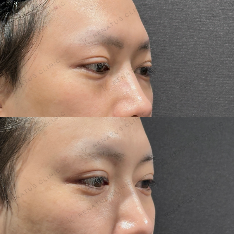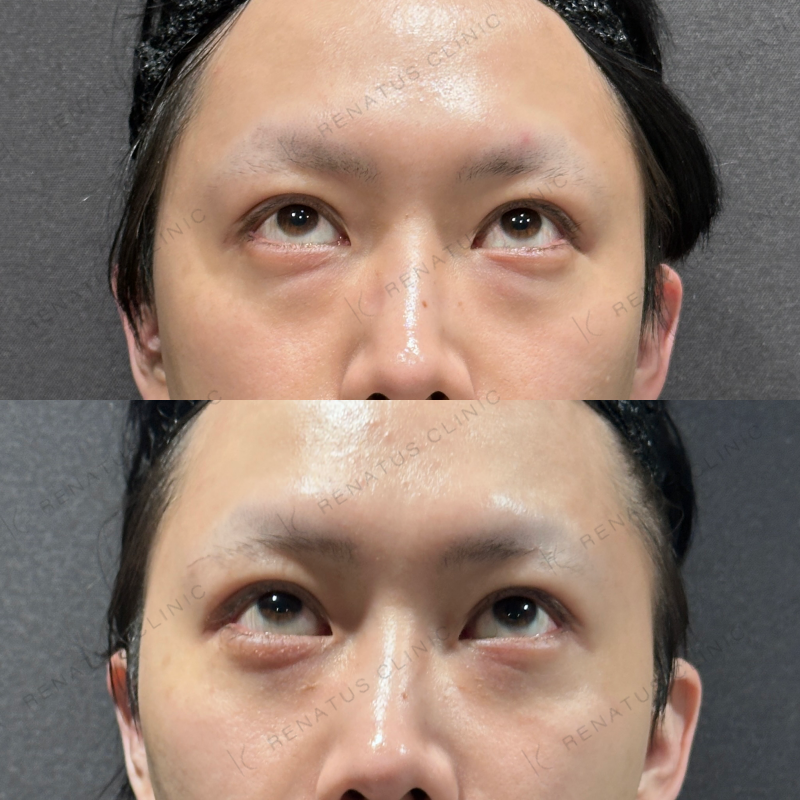 目の下の膨らみが改善するように処置しました。