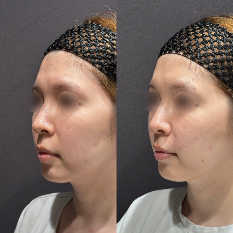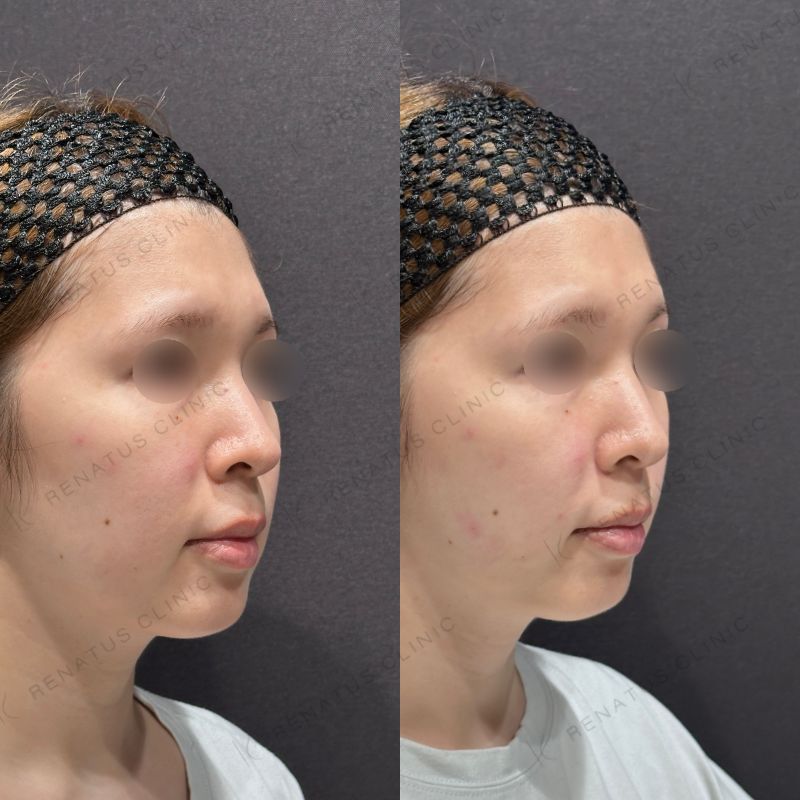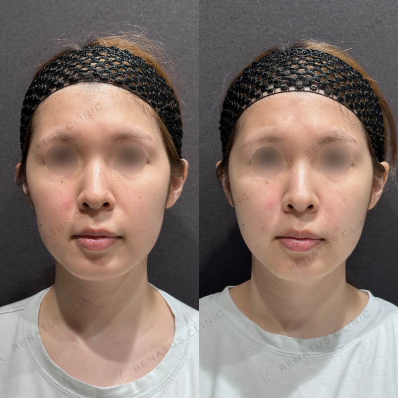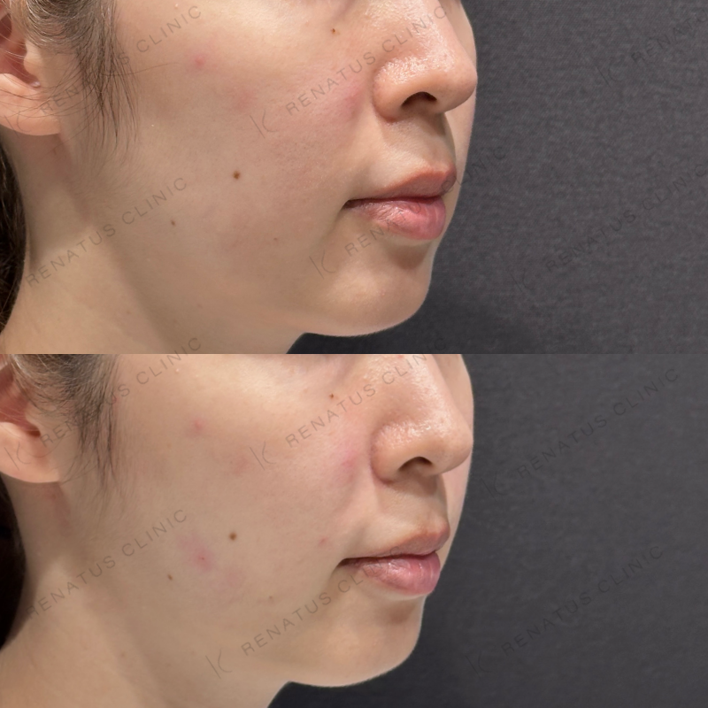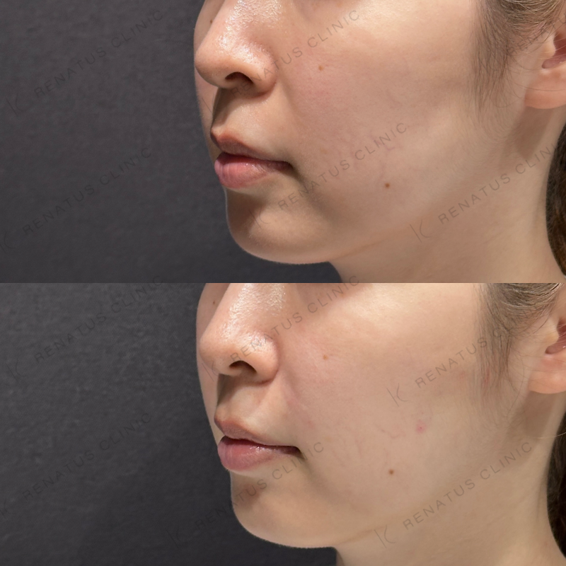 頬のコケが改善し、ほうれい線も目立たなくなるように処置しました。