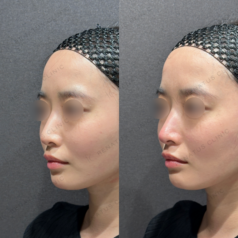 横から見た時の鼻のラインが綺麗になるように処置しました。