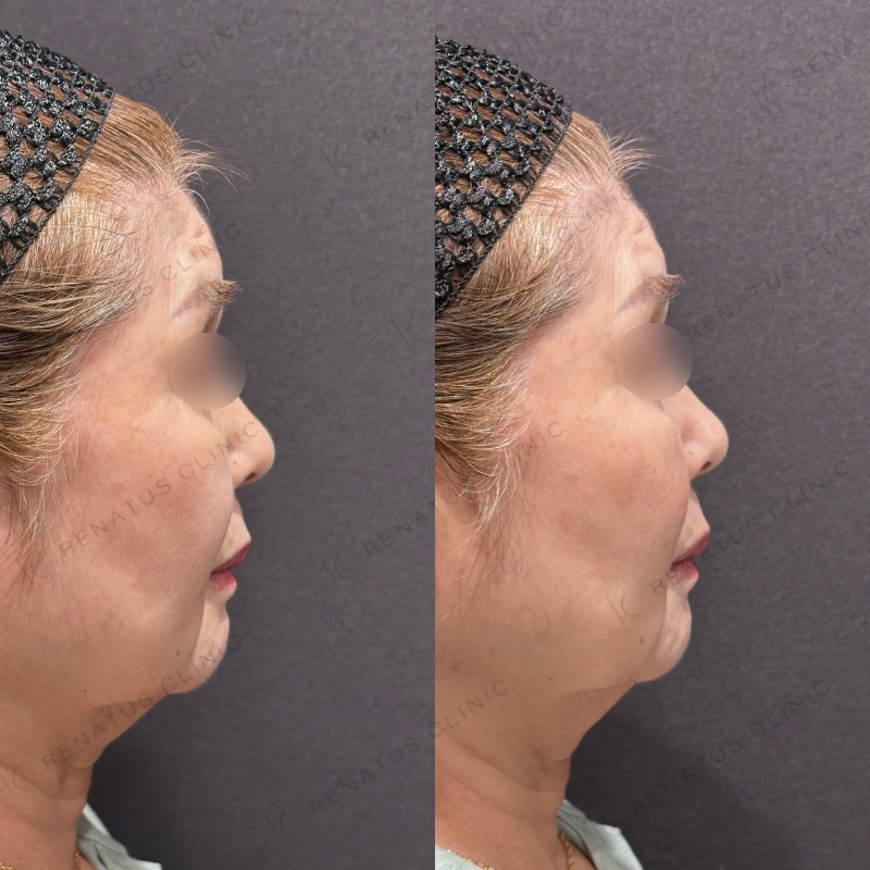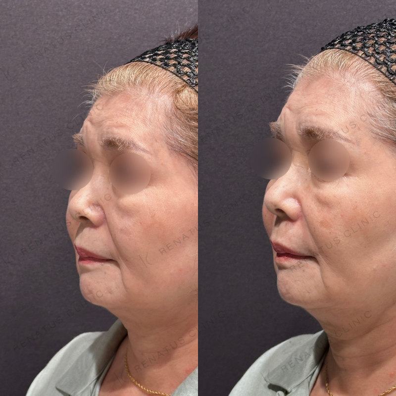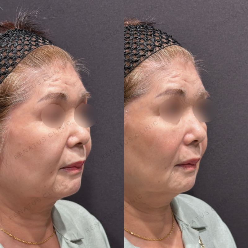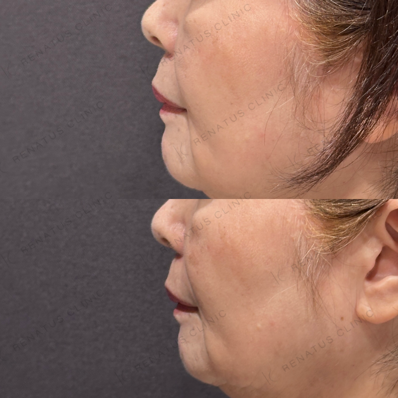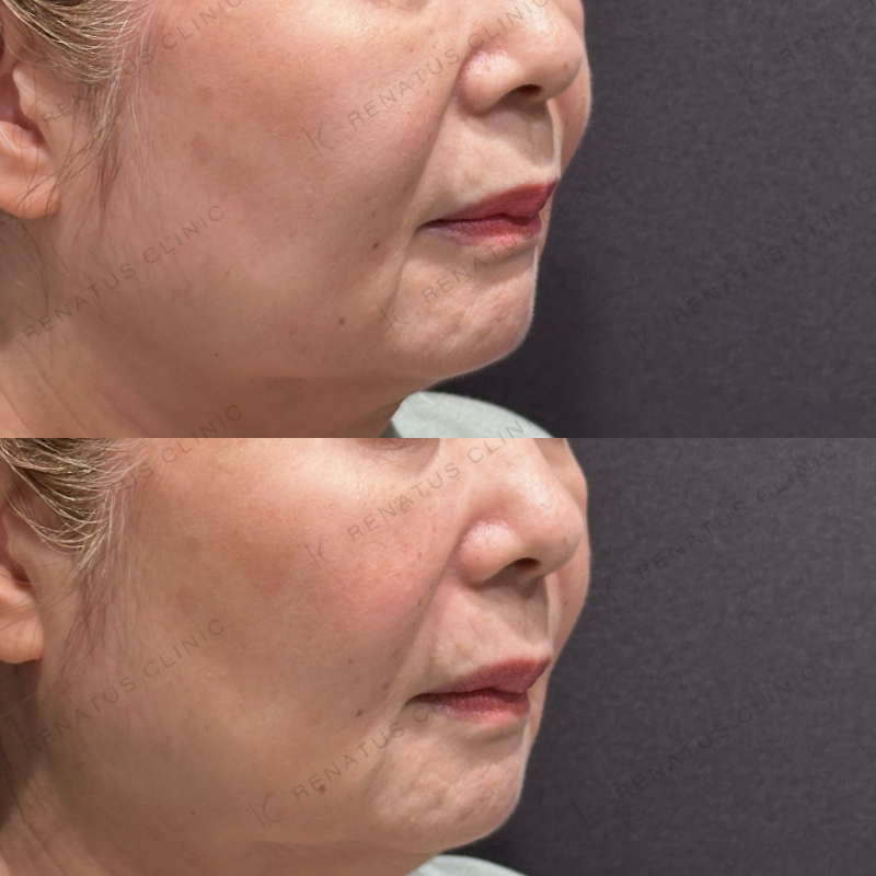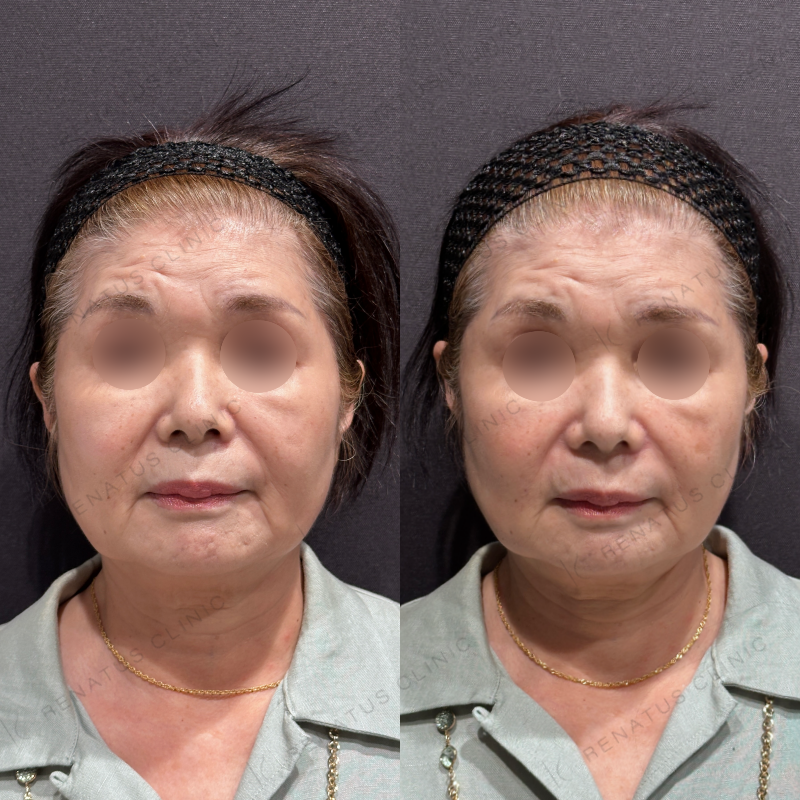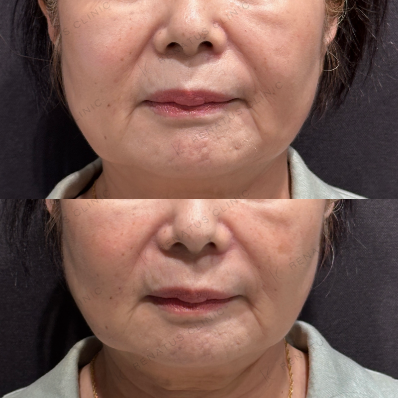 ほうれい線や鼻翼基部の凹みが改善するように処置しました。
