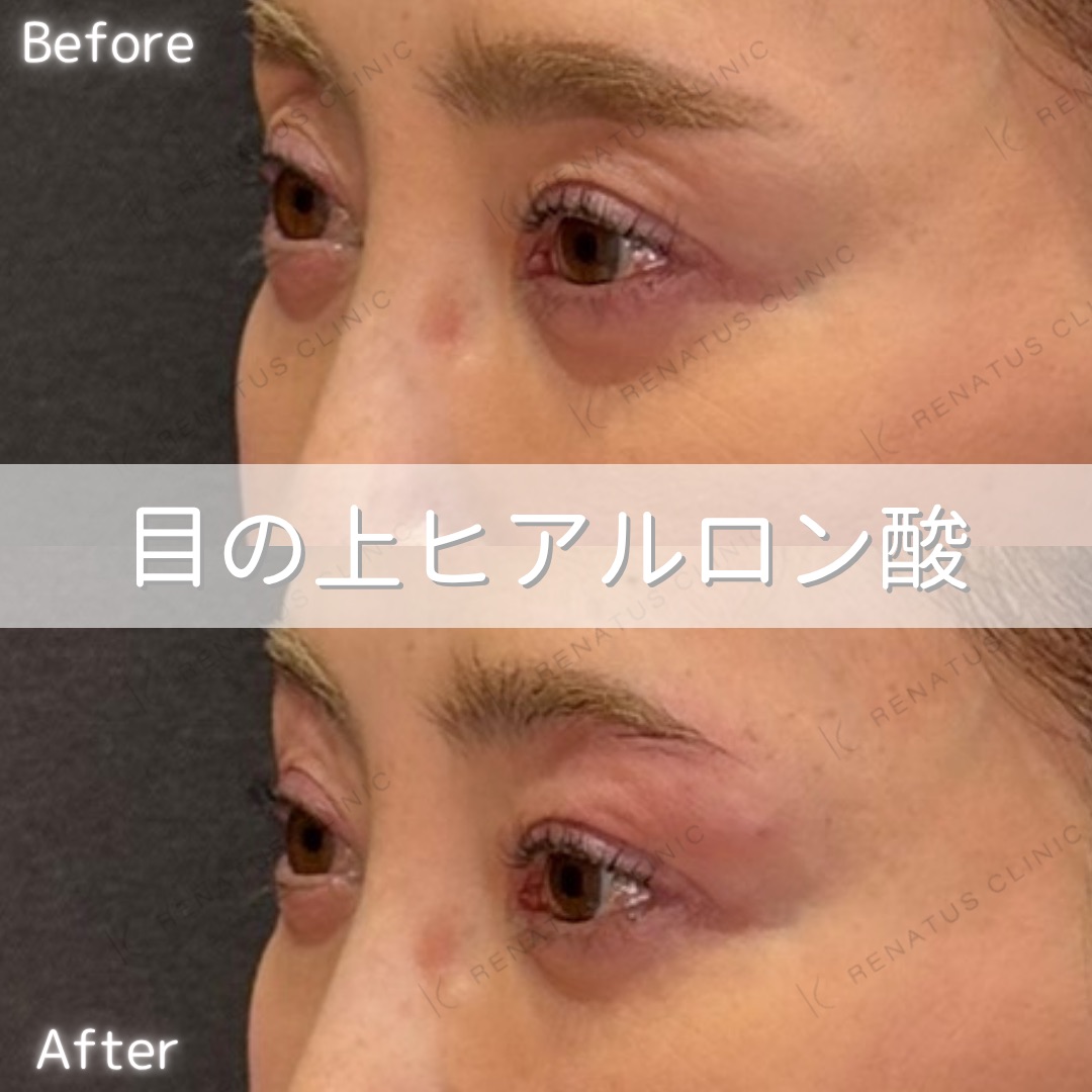 ヒアルロン酸を目の上に注入し、くぼみや疲れ目、老けた印象を改善する施術です。目の上ヒアルロン酸の詳細は以下の通りです。