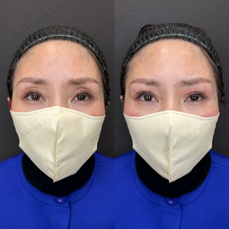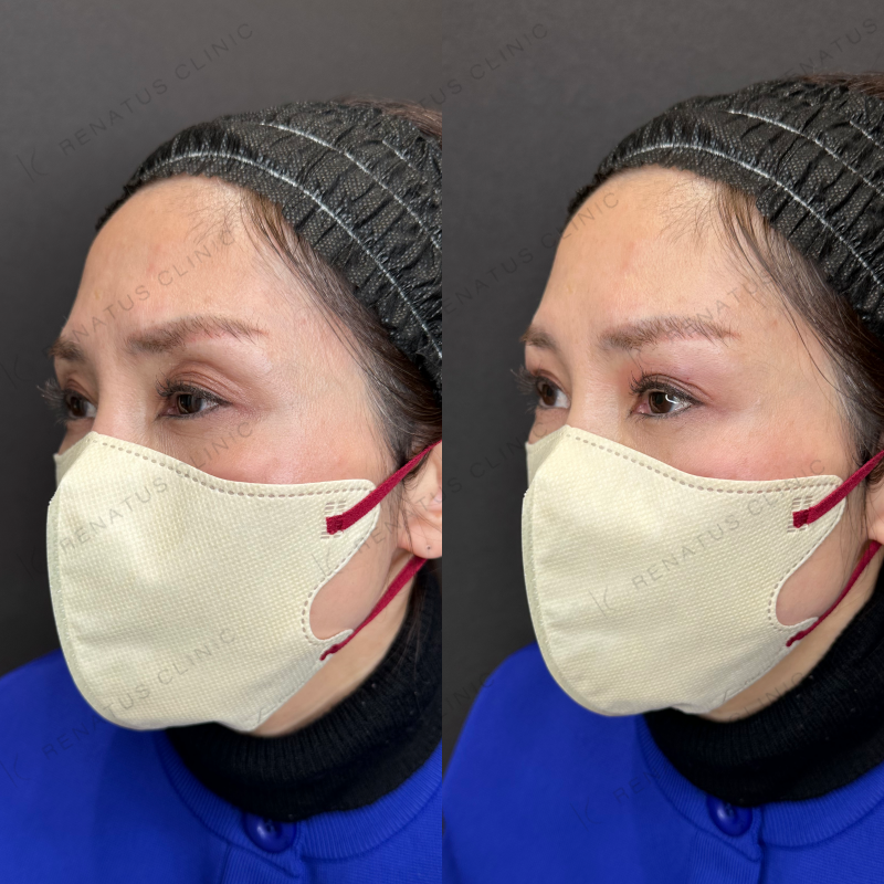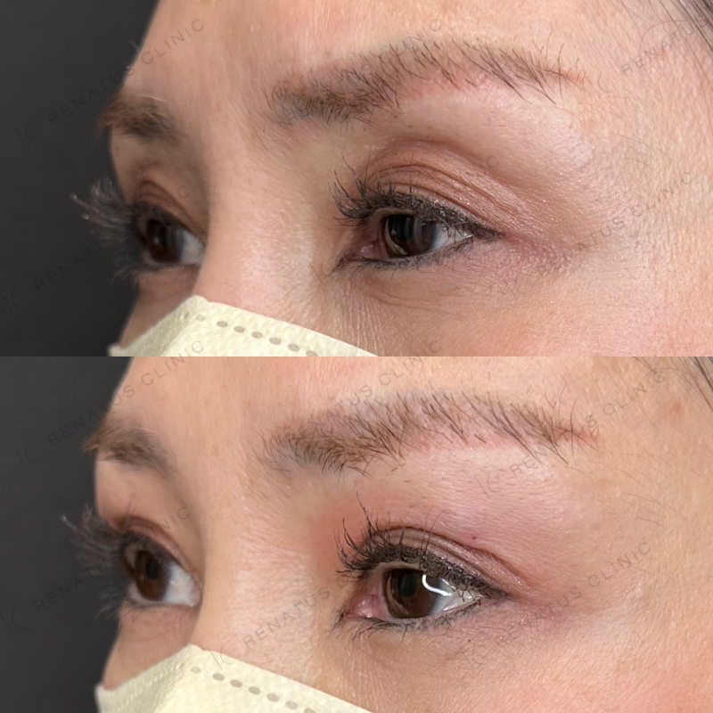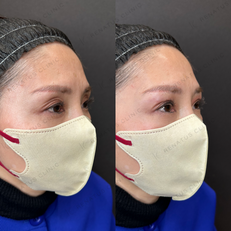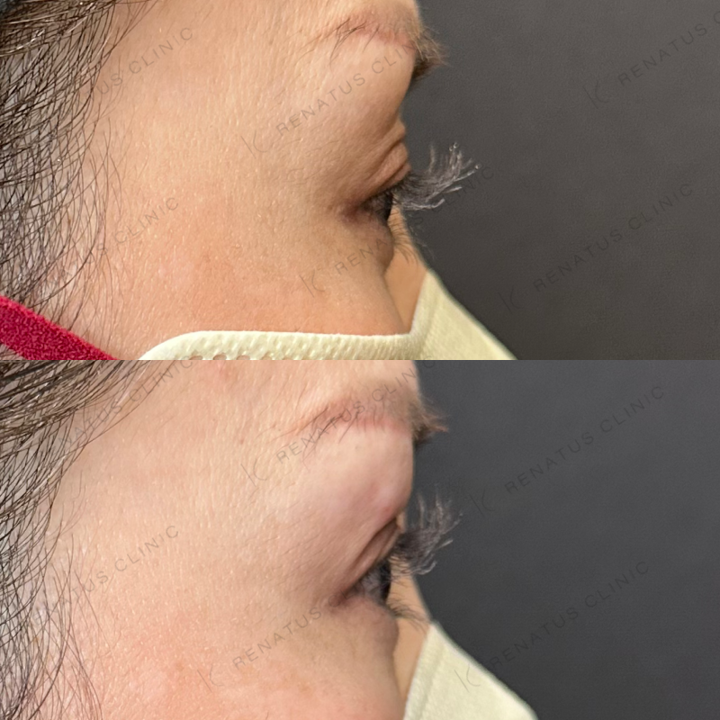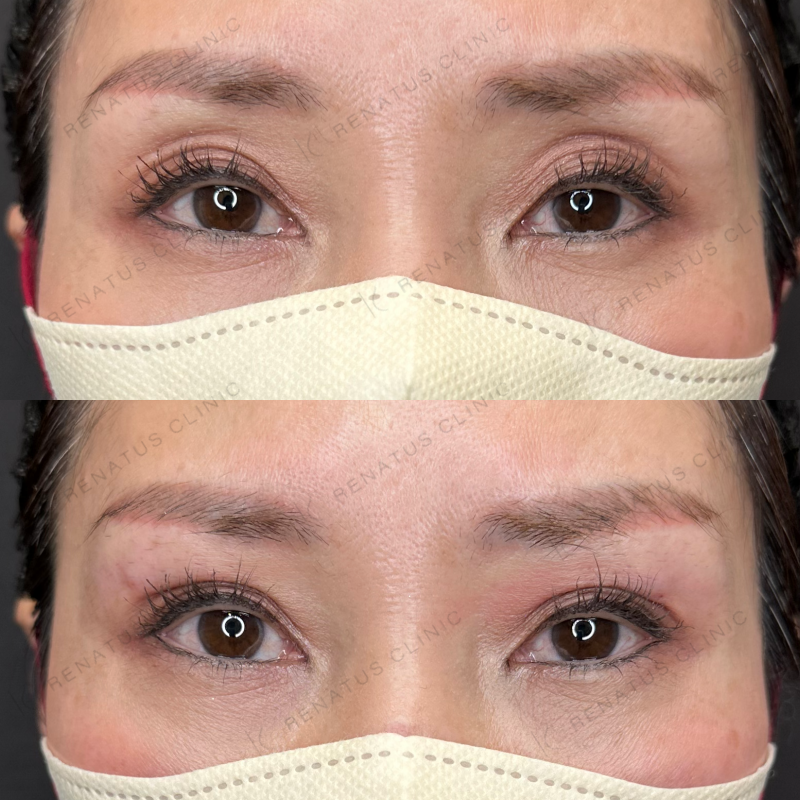 目の上の凹みを滑らかに改善しました。