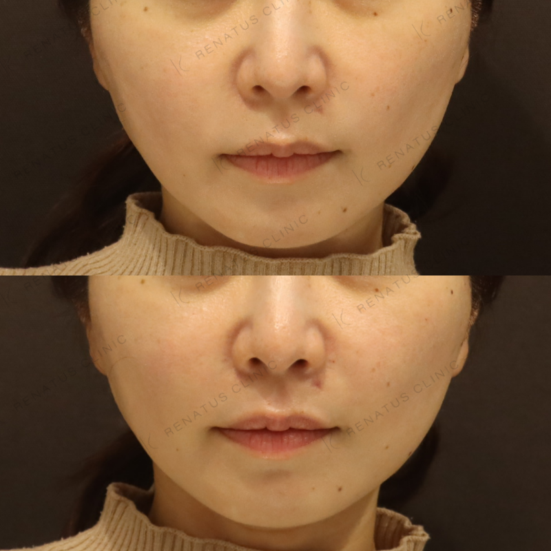レナトゥスクリニック新宿院では、施術前のカウンセリングで鼻全体・顔全体のバランスを丁寧に分析し、患者様のご希望と顔立ちに合ったデザインを一緒に確認しています。注入量・位置・深度を明確に説明したうえで施術を行うため、「なりたいイメージ」と「実際の仕上がり」のギャップを最小限に抑えることができます。