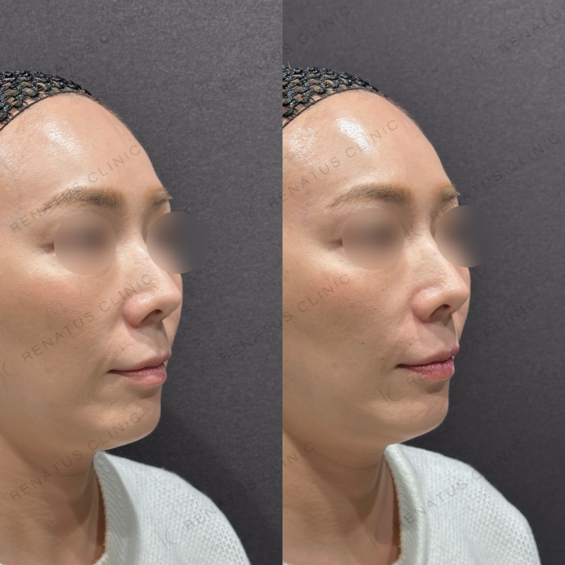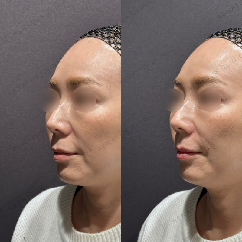 鼻翼基部への注入は、使用する製剤の硬度と注入層の精度が仕上がりを大きく左右します。今回使用したボリフト(VOLIFT)は、中程度の凝集性と適度な硬さを持つヒアルロン酸製剤で、鼻翼基部のような繊細な部位に自然なボリュームと立体感をもたらすのに非常に適しています。皮膚の浅い層に入りすぎず、骨膜上の適切なレイヤーに少量ずつ丁寧に注入することで、不自然な膨らみを抑えながら理想的な鼻筋のシルエットを引き出すことができました。