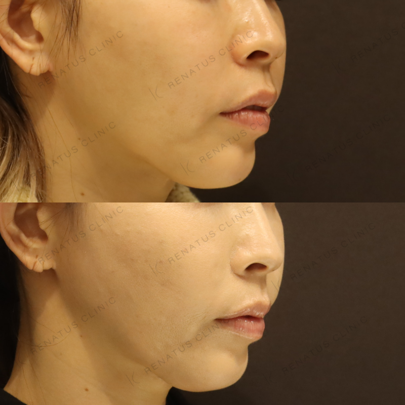 ボライト(VOLITE)は低架橋・低粘度のヒアルロン酸製剤で、真皮浅層への均一な拡散性が最大の特徴です。通常のヒアルロン酸よりも薄い層への精密な注入が求められるため、注入深度のわずかなズレが仕上がりの自然さに直結します。上手い施術者は製剤の流動特性を熟知したうえで、頬の骨格や皮膚厚に合わせた注入量・注入点を細かく設計しており、不自然な凹凸や過剰な膨らみが生じにくいのが特徴です。