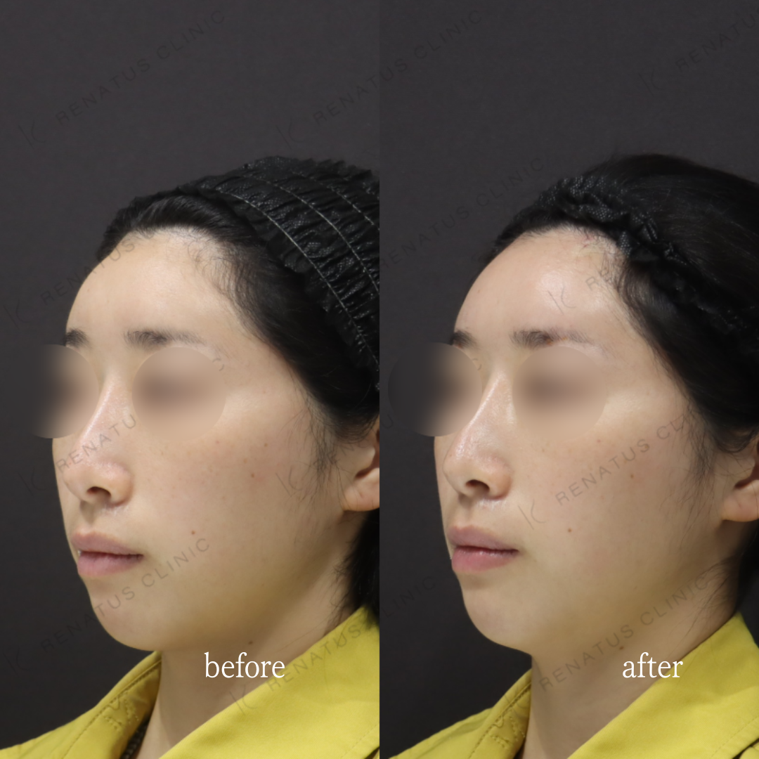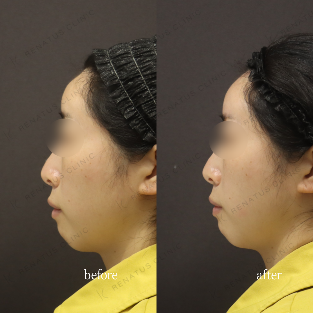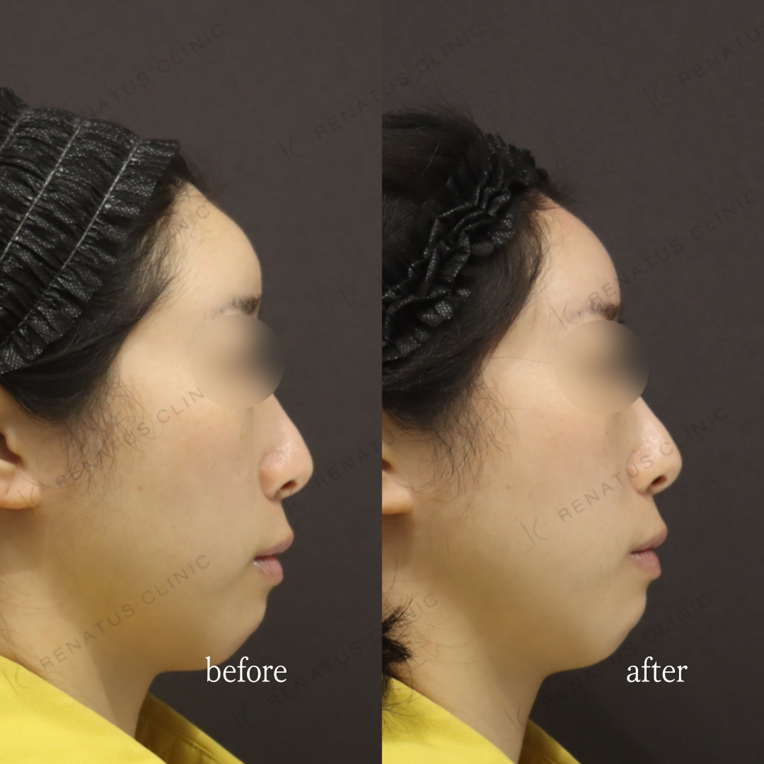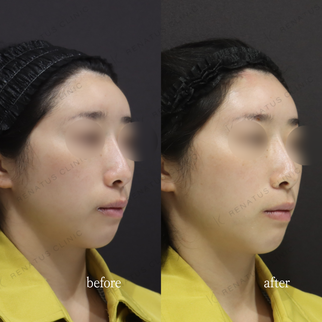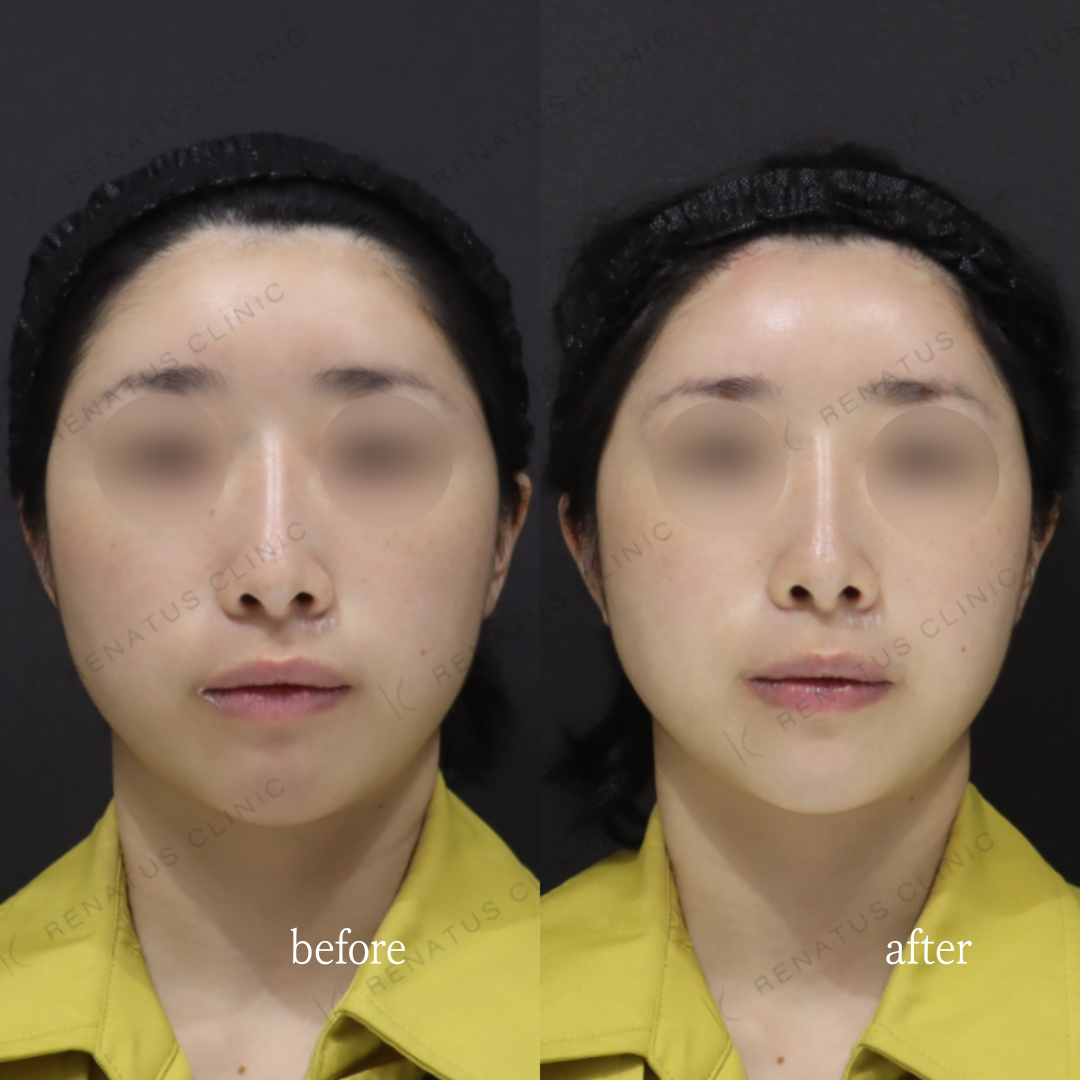他院でヒアルロン酸注入歴後、中央部の残存が気になるようになってきているので目立たなくしたいとのことで自然なつながりの形成を意識して注入いたしました。