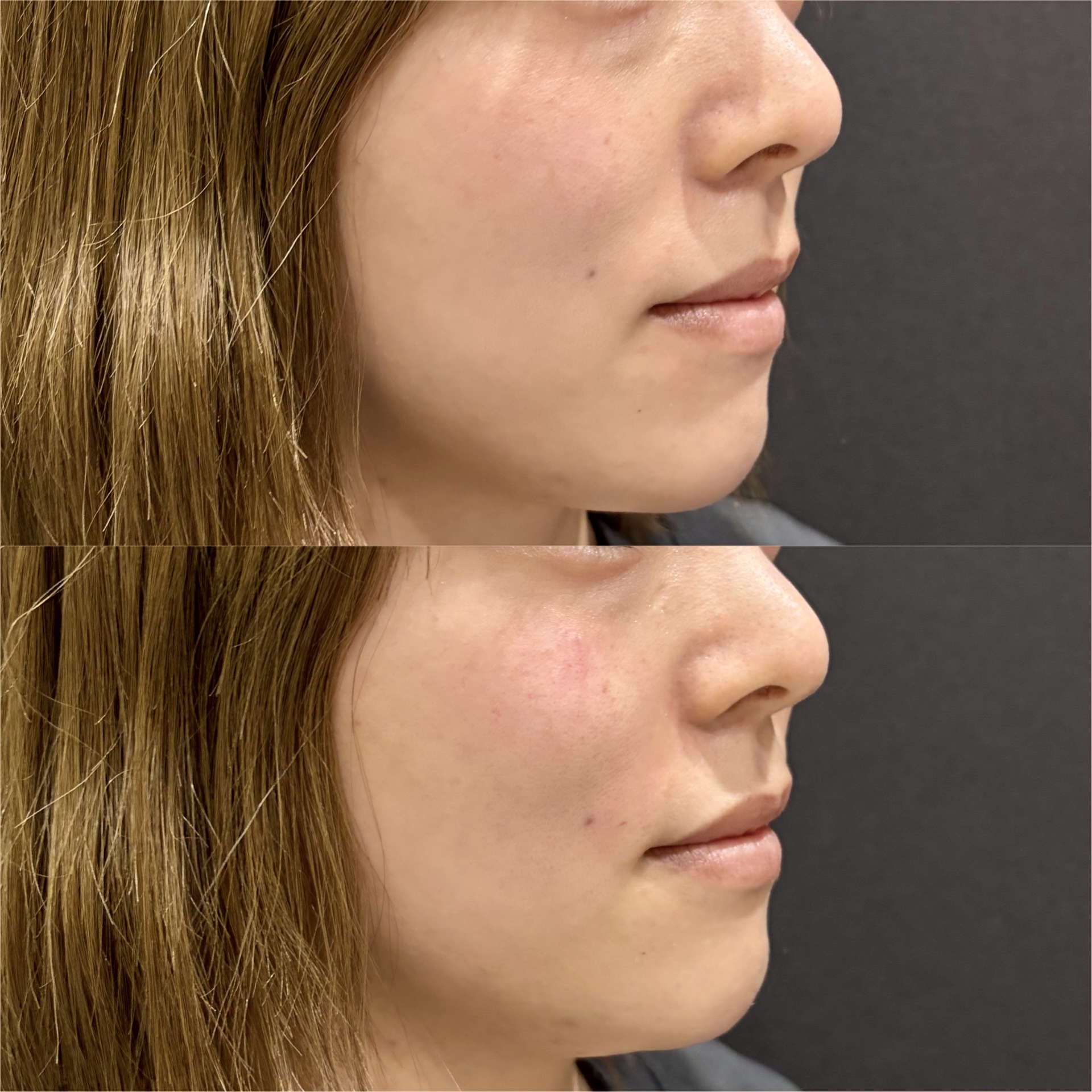 今回はボリフト(VOLIFT)を使用し、ゴルゴラインとほうれい線の両方にアプローチしました。ボリフトはVYCROSS技術により、しなやかでありながら高い持続力を持つ製剤で、中深層への注入に適しており、硬くなりすぎず自然な柔らかさを維持できるのが大きな特長です。注入層と量を部位ごとに細かく調整することで、過剰感のない自然な若返りを実現しています。