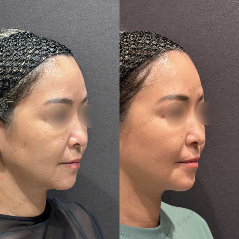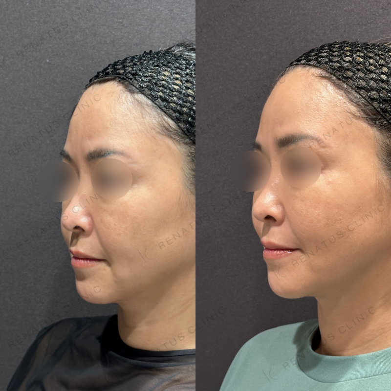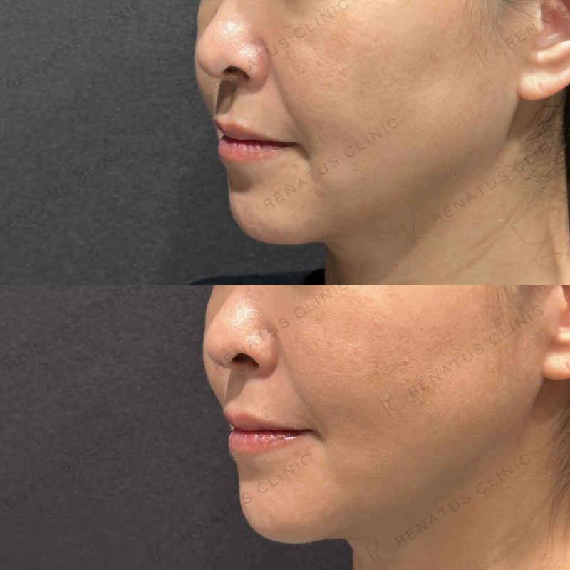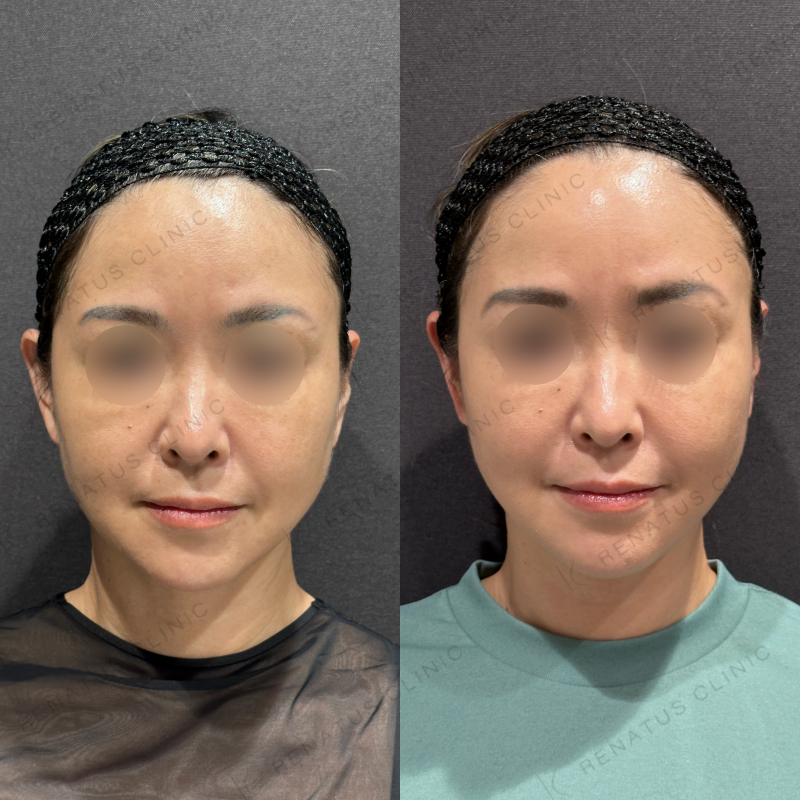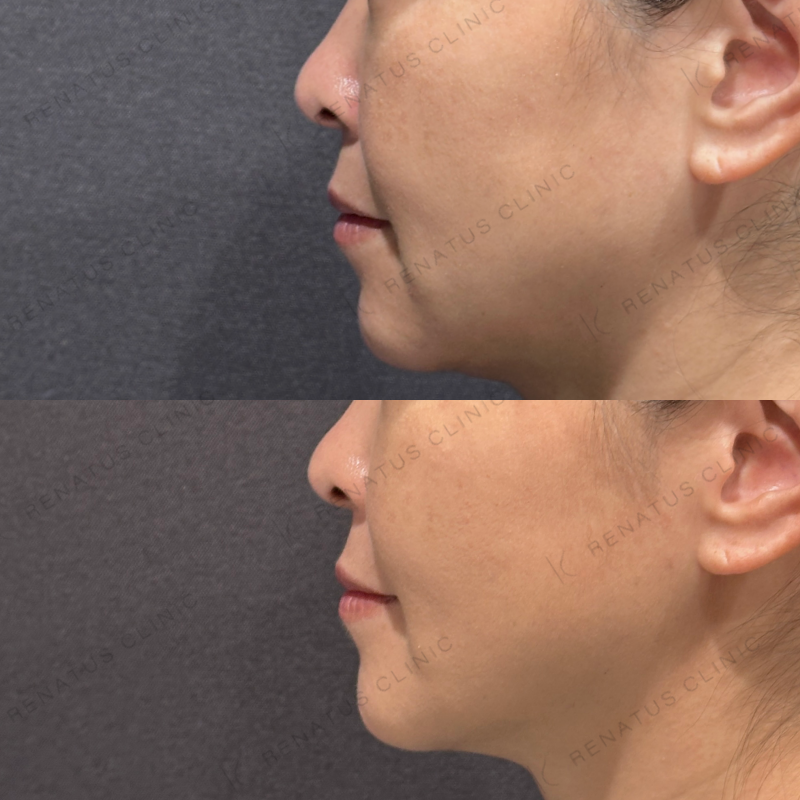 お顔全体が自然と引き上がるように処置しました。