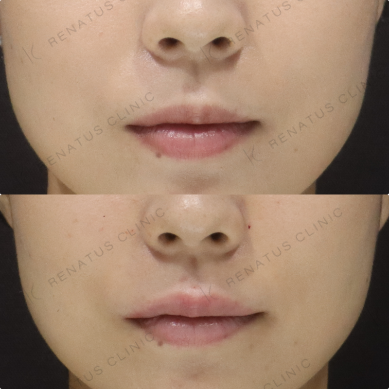 レナトゥスクリニック新宿院では、カウンセリング時に現在の唇の形・厚み・左右バランスを詳細に確認し、患者様が望む仕上がりイメージを丁寧にヒアリングします。「どのくらい厚くしたいか」「上唇と下唇のバランスはどうしたいか」など具体的なゴールを共有したうえで施術に臨むため、理想とのギャップが生まれにくく、初めての方でも安心して施術を受けていただけます。