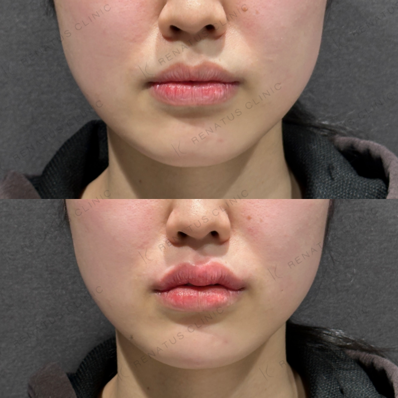 A:個人差はありますが、腫れや内出血は注入後2〜5日程度で落ち着くことが多いです。唇は特に腫れやすい部位のため、施術後はなるべく刺激を避け、強い圧迫やマッサージはお控えください。ご不安な点はアフターフォローでご相談いただけます。