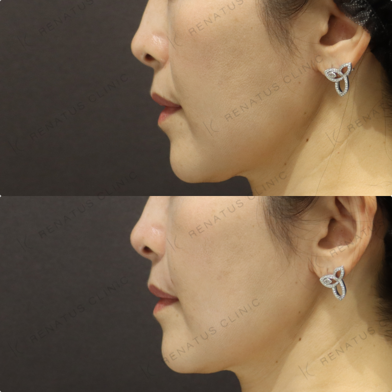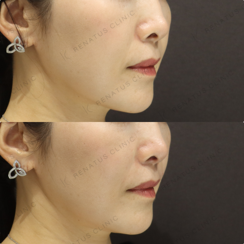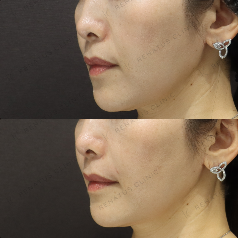 今回はボリフト(VOLIFT)を用いて、ほうれい線の溝と鼻翼基部のボリューム不足を同時にアプローチしました。ボリフトは適度な硬さとなめらかな伸展性を兼ね備えた製剤であり、中層〜深層への均一な注入により不自然な凹凸が生じにくいのが特長です。40代の方はたるみと骨格的な変化が複合的に起きているため、注入層とボリュームの配分を丁寧に設計することで、自然かつ持続性の高い若返り効果を実現しています。