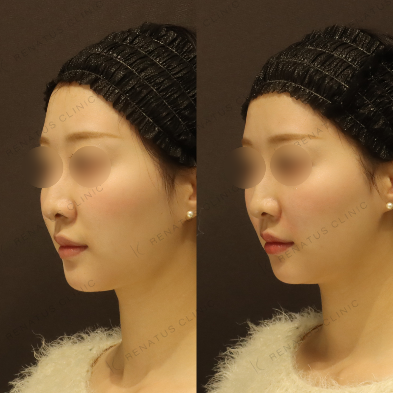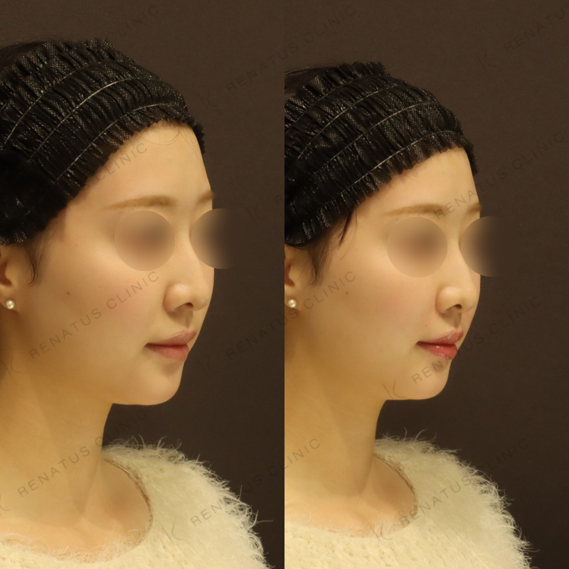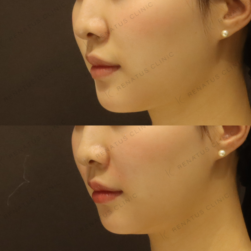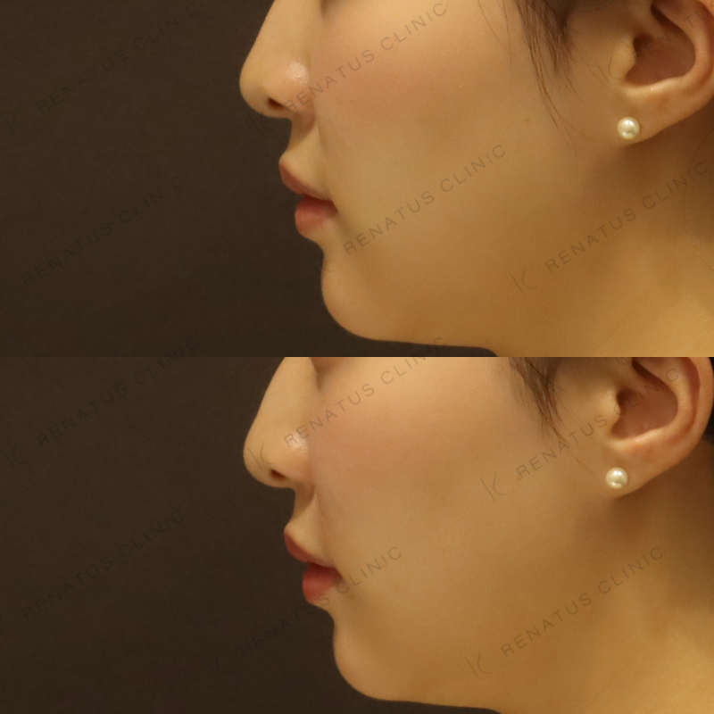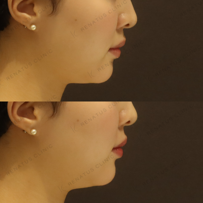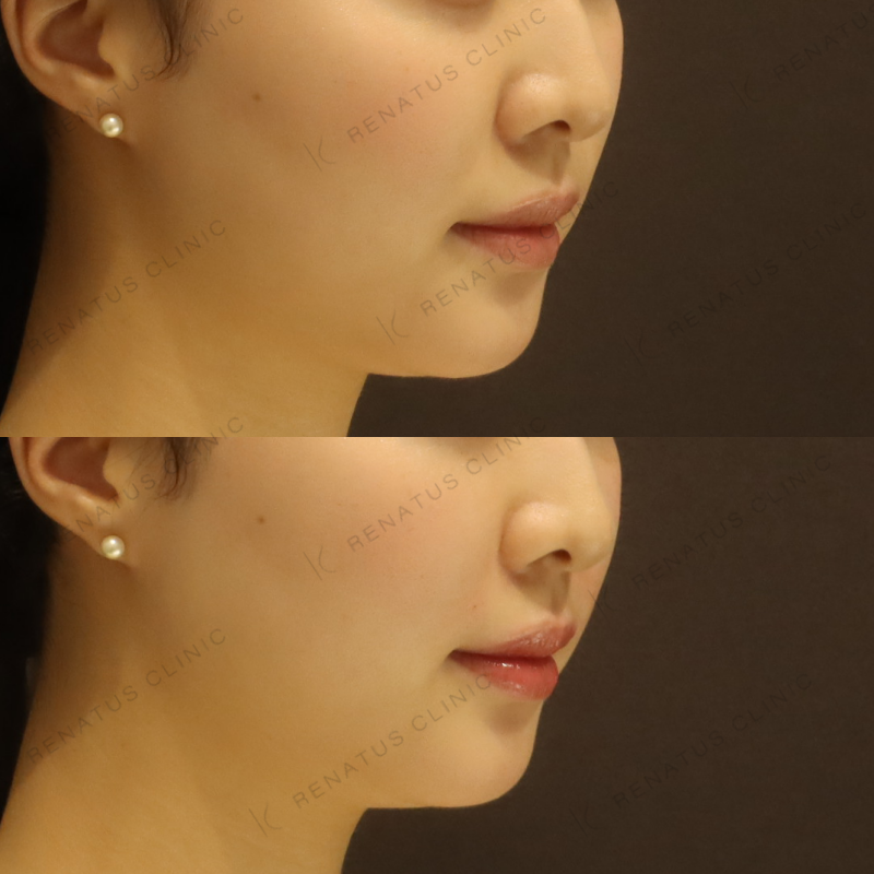 もう少し硬めのヒアルロン酸で、骨膜上への注入とするとさらに綺麗に仕上がりも望めます。