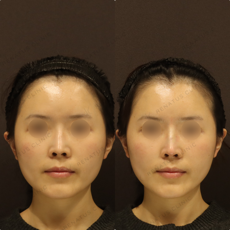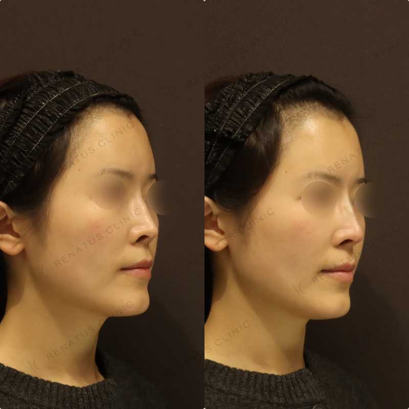 今回の症例では、高い弾力性と形状維持力に優れたヒアルロン酸製剤「ボラックス(VOLUX)」を使用し、鼻筋から鼻尖にかけて自然なラインを形成しました。ボラックスは従来製剤と比べてゲルの密度が高く、鼻のような輪郭形成部位での持続性(約18〜24か月)と定着性に特に優れており、流れにくい設計が長期にわたる仕上がりの安定を支えます。注入層・注入量・ベクターの細やかなコントロールにより、患者様お一人おひとりの骨格に合わせた立体的な鼻梁形成を心がけています。