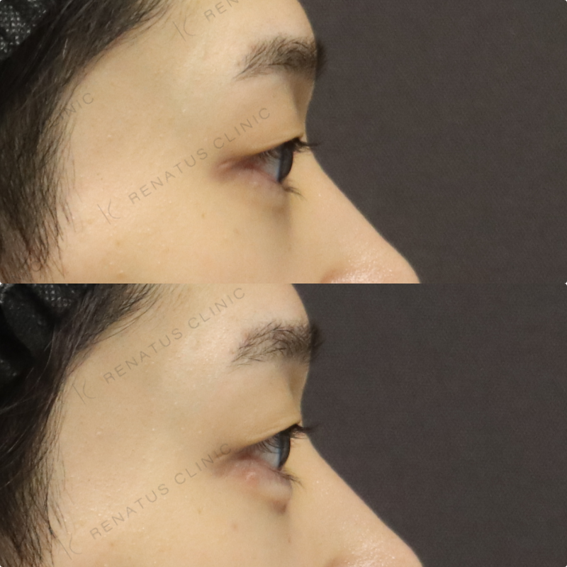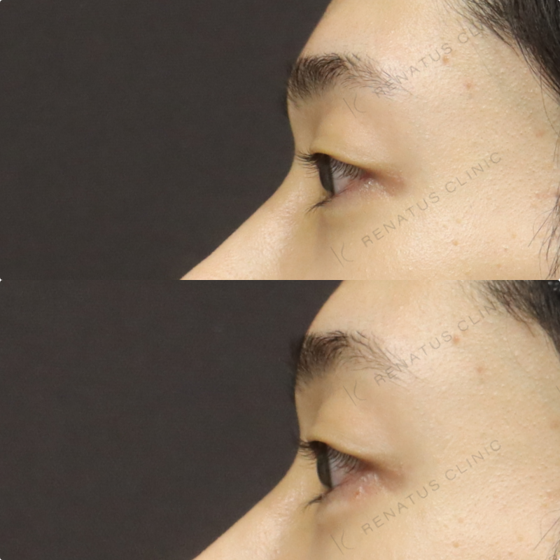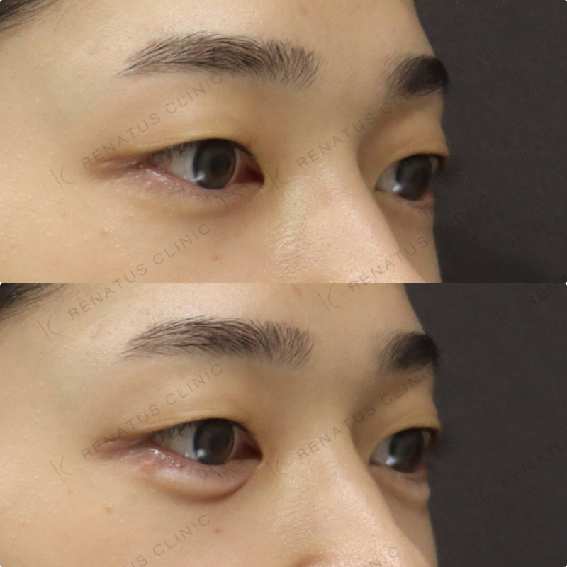 今回はボルベラ(VOLBELLA)を使用し、男性特有のすっきりとした目元に馴染むよう、注入量と注入層を丁寧に調整しました。ボルベラは非常に柔らかい粒子設計のヒアルロン酸製剤で、薄い皮膚にも自然なボリュームを与えられるため、涙袋形成に特に適しています。作りすぎず、元々あったかのような自然な立体感を意識して仕上げています。